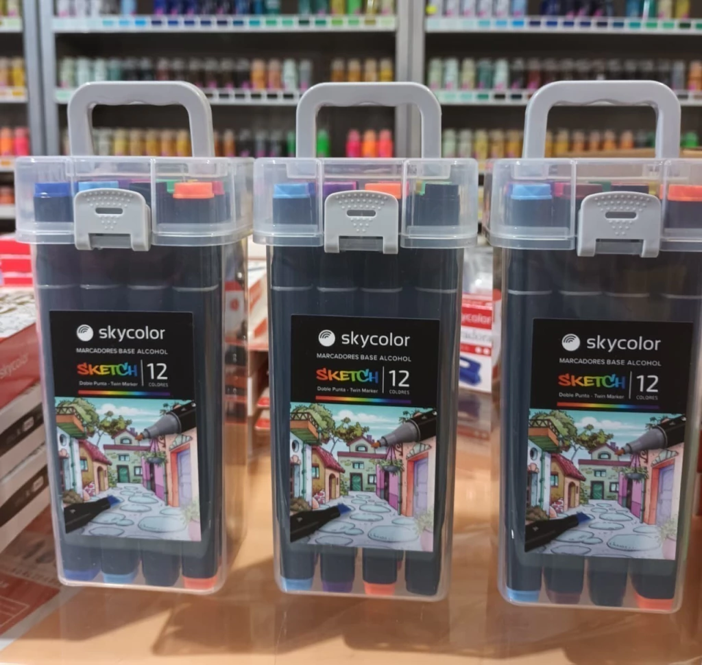 Los Marcadores Skycolor Sketch Artista Doble Punta X 1 Colores son la herramienta ideal para artistas y diseñadores que buscan calidad y versatilidad en su trabajo. Fabricados con un cuerpo de plástico resistente, estos marcadores cuentan con tinta a base de alcohol que garantiza colores vibrantes y duraderos. Su diseño de doble punta permite realizar trazos finos y gruesos, adaptándose a diversas técnicas de ilustración, animación y dibujo arquitectónico. Cada unidad viene en una práctica valija, facilitando su transporte y almacenamiento. Se recomienda su uso en papel de alto gramaje para obtener los mejores resultados. Para mantener su calidad, asegúrate de taparlos después de cada uso y guardarlos en un lugar fresco. Con estos marcadores, cada proyecto cobra vida con un acabado profesional y una fluidez excepcional.